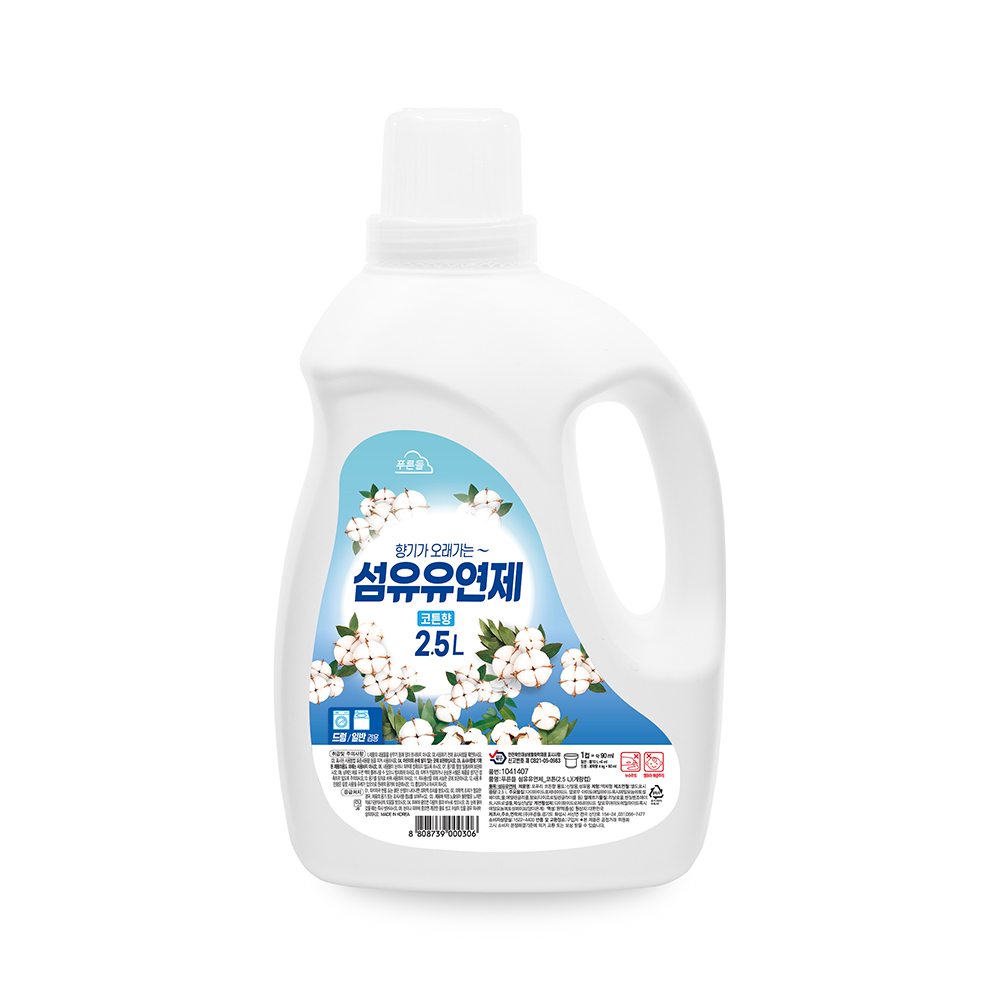 제품명 포푸리 코튼향 주요성분 물, 다이하이드로제네이티드 탈로우 아미도에틸하이드록시에틸모늄메토설페이트 등 용량 2.5, 4.2, 20L 타입 액체형 특징 파라벤 외 13가지 유해성분 무첨가된 섬유유연제